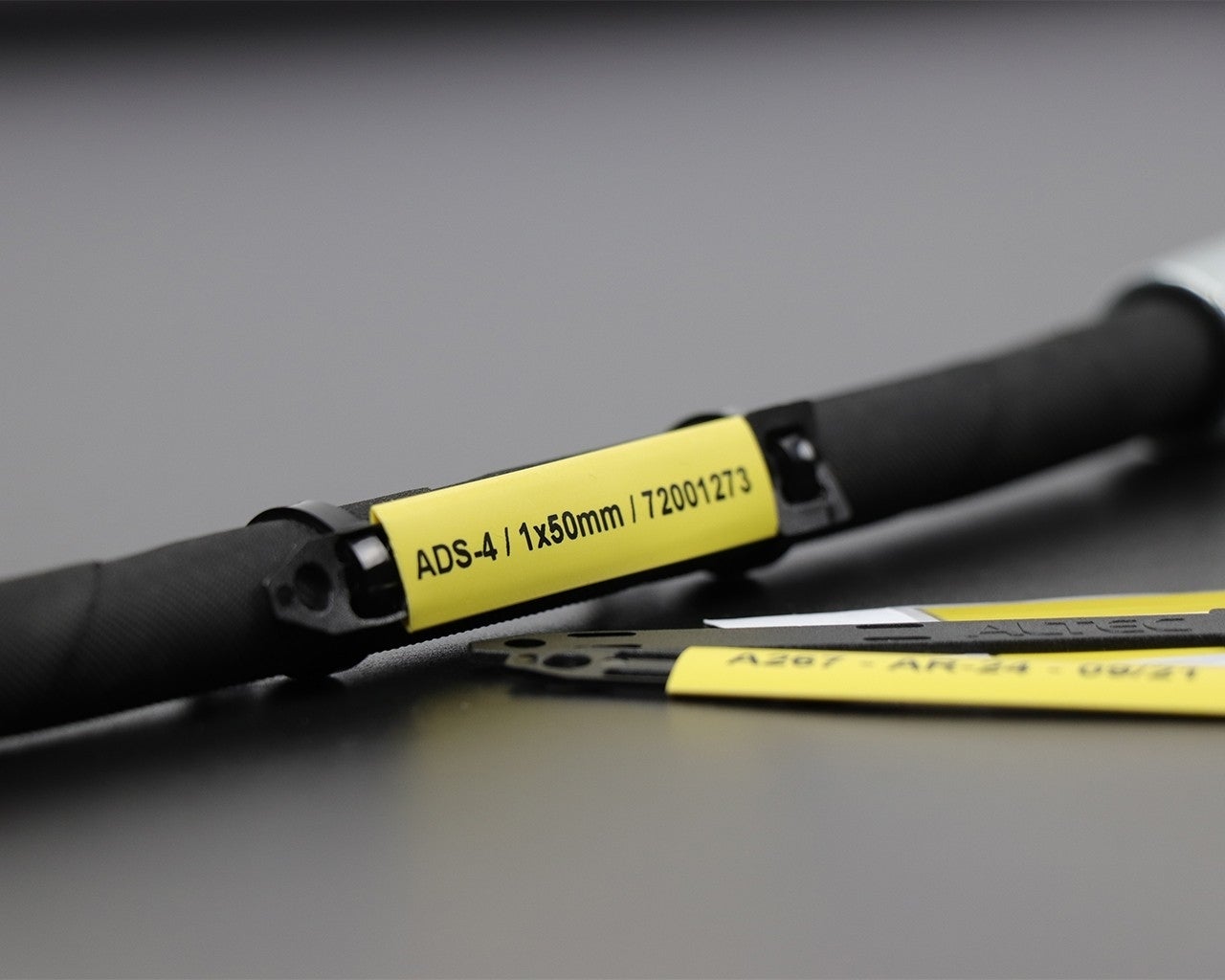 Onze draagstrip is speciaal bedoeld voor ADS-4 Krimpkousen. Schuif de Sleeves over de draagstrip en codeer met ƩƩn labeloplossing verschillende kabeldiameters. Het is zelfs mogelijk om extra dikke kabels met een grote diameter te coderen. Met behulp van kabelbinders kun je de draagstrip op een kabel vastzetten.