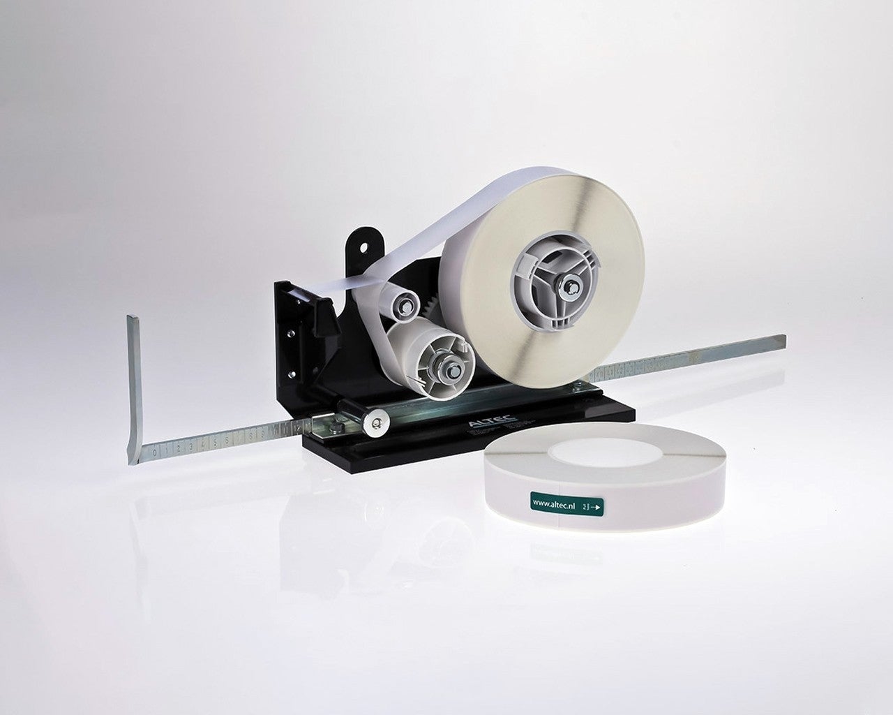 De Altec Tape Dispenser is een onmisbaar hulpmiddel bij het extra lamineren van wikkellabels. Het komt voor dat kabels of slangen een grotere diameter hebben dan de maximale grootte van een wikkellabel toelaat. In dit geval kan extra laminaat om een wikkellabel een uitkomst bieden. De Altec Tape Dispenser is vervolgens de ideale oplossing om dit laminaat op maat te maken en netjes af te scheuren.