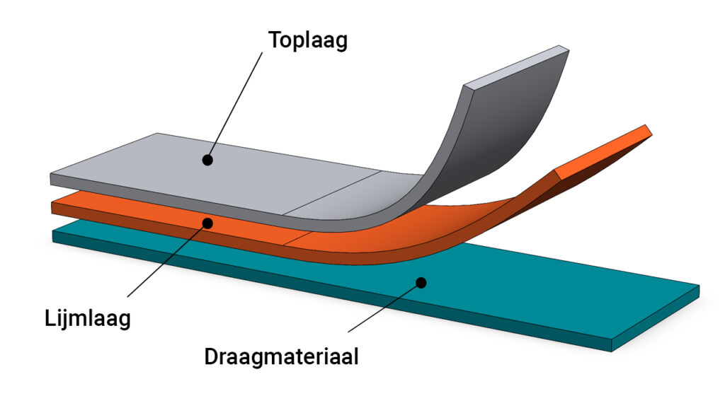 Lijmlaag: dit zorgt dat het label goed blijft plakken op de ondergrond.