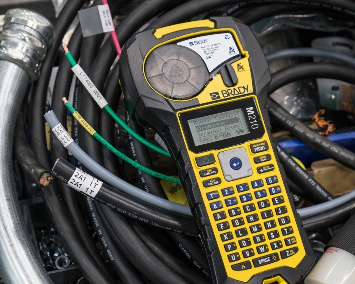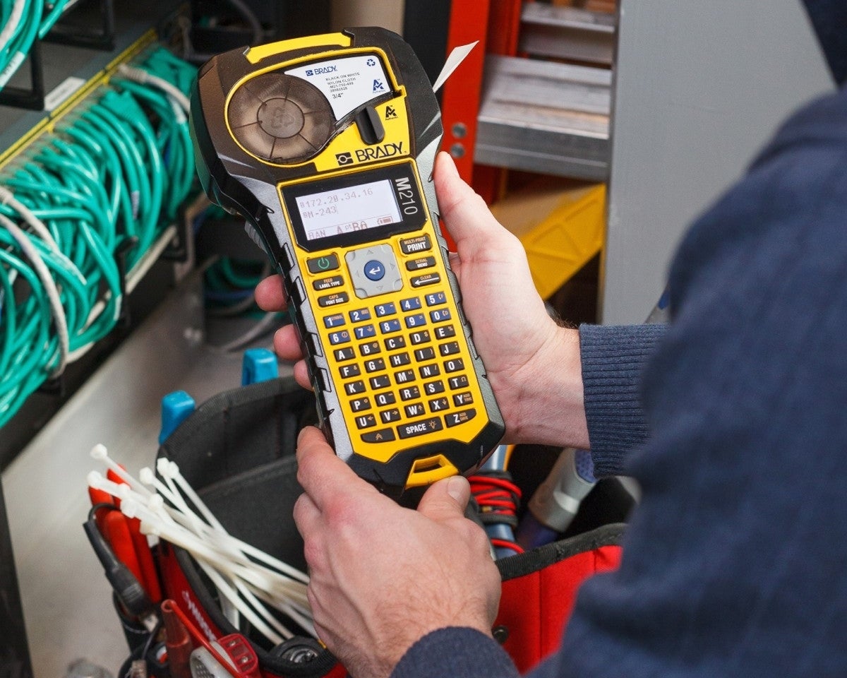 Brady M210De M210 draagbare labelprinter is een alles-in-één printer voor voice/datacom, elektrische en algemene industriële identificatie. Zijn talrijke troeven, waaronder eenvoudig te plaatsen cartridges, een oplaadbare lithium-ionbatterij, rubberen beschermbumpers en een garantie van twee jaar, bezorgen u de intelligentie en de kracht die nodig zijn om de dagelijkse uitdagingen van iedere labelingtoepassing aan te kunnen.