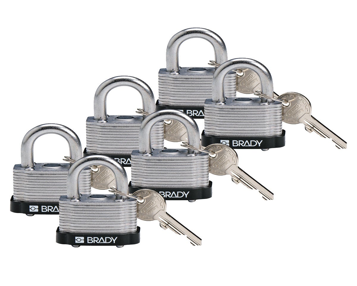 De stalen Brady-hangsloten zijn vervaardigd in versterkt gelamineerd staal zodat ze bestand zijn tegen extreem fysiek geweld, en zijn voorzien van een beugel in gehard staal die hen moeilijk door te knippen maakt. De lagen van de behuizing zijn afzonderlijk gecoat voor een superieure roestvastheid. De cilinder met 5 stiften biedt meer unieke sleutelvarianten en is beter beveiligd tegen manipulatie dan conventionele sloten met 4 stiften. Gekleurde stootbandjes beschikbaar voor identificatie en bescherming, en gepersonaliseerde labeling is verkrijgbaar. Hangsloten zijn Keyed Different verkrijgbaar. Sleutelblokkering (sleutel kan niet uit het slot worden verwijderd voor het hangslot goed gesloten is) Andere sleutelsystemen en registratie zijn mogelijk. Vergrendelingslabels worden afzonderlijk verkocht.