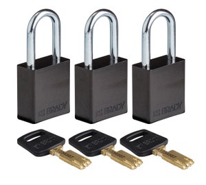 De SafeKey Aluminium-hangsloten van Brady zijn de ultieme sloten voor veeleisende veiligheidstoepassingen binnen en buiten. De hangsloten hebben een aluminium behuizing en stalen beugel, wat ze ongelooflijk licht en robuust maakt. Ze vormen een aanvulling op het assortiment SafeKey-hangsloten van Brady en hebben dezelfde kenmerken. De sloten zijn bestand tegen chemicaliën en corrosie. Het unieke slotmechanisme is geïsoleerd en voorzien van 6 stalen precisiestiften voor een groot aantal sleutelverschillen en manipulatiebestendigheid. De sleutel en behuizing hebben dezelfde kleur, waardoor ze snel geïdentificeerd kunnen worden. Ieder hangslot wordt geleverd met 1 sleutel. Gepersonaliseerde sleutels, gravering, registratie, loper en centrale loper zijn beschikbaar – bekijk onze aanpassingsmogelijkheden.