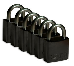 Onze hangsloten bestaan uit een behuizing en beugel in stevig aluminium, wat ze ongelooflijk licht en robuust maakt. De sloten zijn bestand tegen chemicaliƫn en corrosie, en omvatten cilinders met 6 stiften voor een nog grotere fraudebestendigheid. De hangsloten worden Keyed Different geleverd. Per slot worden 2 sleutels geleverd, GEEN sleutelbehoud. Andere sleutelsystemen en registratie zijn mogelijk. Vergrendelingslabels worden afzonderlijk geleverd.