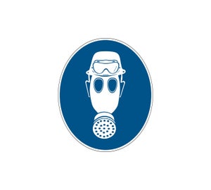 Gebodspictogram - Dragen van helm, gasmasker en zuurbril verplicht