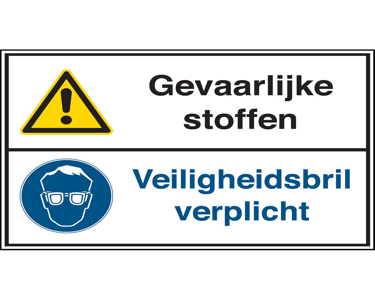 Gecombineerde pictogram - Gevaarlijke stoffen / Veiligheidsbril verplicht - Gevaarlijke stoffen Veiligheidsbril verplicht