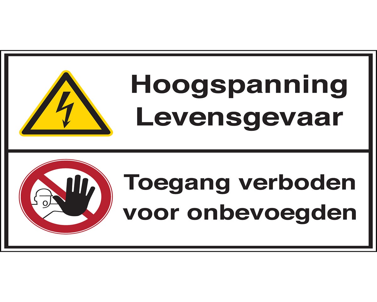 Gecombineerde pictogram - Hoogspanning. Levensgevaar / Toegang verboden voor onbevoegden - Hoogspanning Levensgevaar Toegang verboden voor onbevoegden