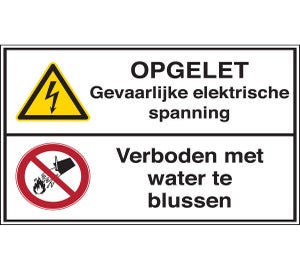 Gecombineerde pictogram - Opgelet gevaarlijke elektrische spanning / Verboden met water te blussen - OPGELET Gevaarlijke elektrische spanning Verboden met water te blussen