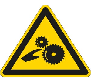 Pictogram voor Machineveiligheid - Opgelet voor draaiende tandwielen (of walsen)