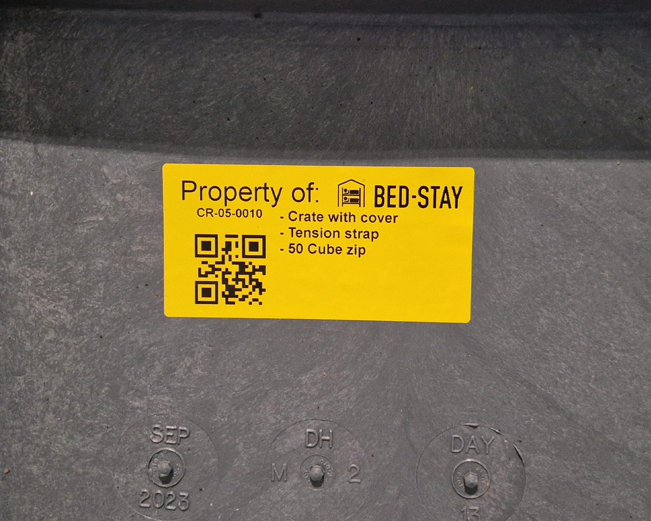Bed-Stay zocht een oplossing voor het identificeren van emballage, zoals transportkisten en opslagbakken. Deze emballage wordt regelmatig blootgesteld aan uitdagende omstandigheden zoals vocht, vuil en slijtage. De grootste uitdaging was dan ook het vinden van labels die in deze omstandigheden niet loslaten of onleesbaar worden. Onze Industrial vinyl labels bieden hiervoor de perfecte oplossing. Dankzij de sterke kleefkracht en hoge bestendigheid tegen vocht, vuil en slijtage, blijven deze labels langdurig bevestigd en goed leesbaar onder alle omstandigheden. Bovendien zijn ze bestand tegen UV-straling en temperatuurwisselingen, wat ze geschikt maakt voor zowel binnen- als buitenomgevingen.