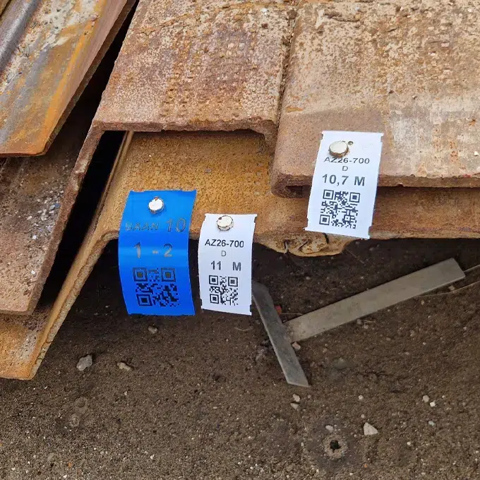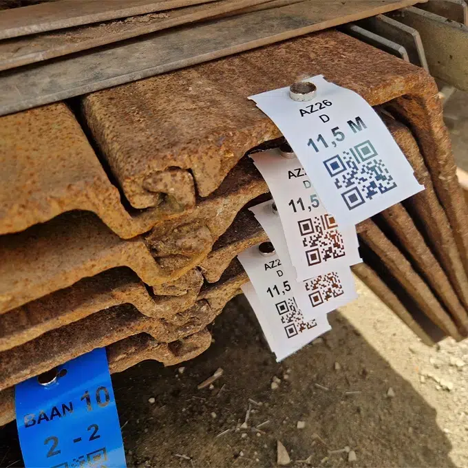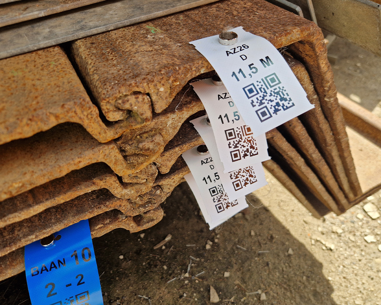 Voorheen waren de damwanden niet gecodeerd. Dit zorgde voor veel uitzoekwerk en onduidelijkheid over welk materiaal waarheen moest. Dankzij de Tag Extreme zijn de damwanden nu eenvoudig te coderen. Deze tags zijn speciaal ontwikkeld voor zware industriële omgevingen en zijn zelfs na het inknippen nog steeds onscheurbaar. Het flexibele materiaal is bestand tegen de wrijving van metaal en beton en heeft geen ‘geheugen’. Hierdoor veren de tags terug wanneer ze worden geplet, zodat QR-codes altijd goed te scannen zijn. Daarnaast gebruiken ze de tag in verschillende kleuren, die ook bij buitengebruik jarenlang kleurecht blijven.