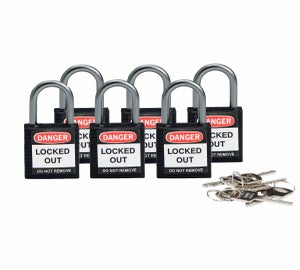 Brady Compact Safety Padlocks are a lightweight range of padlocks suitable for energy isolation programs. They compliment the Brady Safety Padlock and have the same features. Unique cylinder is insulated to protect workers from shocks when key is inserted and is 5-pin precision-machined for more unique key cuts and better tamper resistance. Reserved, paracentric keyway provides optimal security and the special design prohibits the key from being released until the padlock shackle is closed. Locks are compact and lightweight and resist impact, temperature, chemicals and corrosion. Their non-conductive, non-sparking body features a ribbed design for easier gripping and handling. 1 key supplied with each lock. Key retaining (Key won’t release until the padlock shackle is securely closed). Custom keying and charting is available.