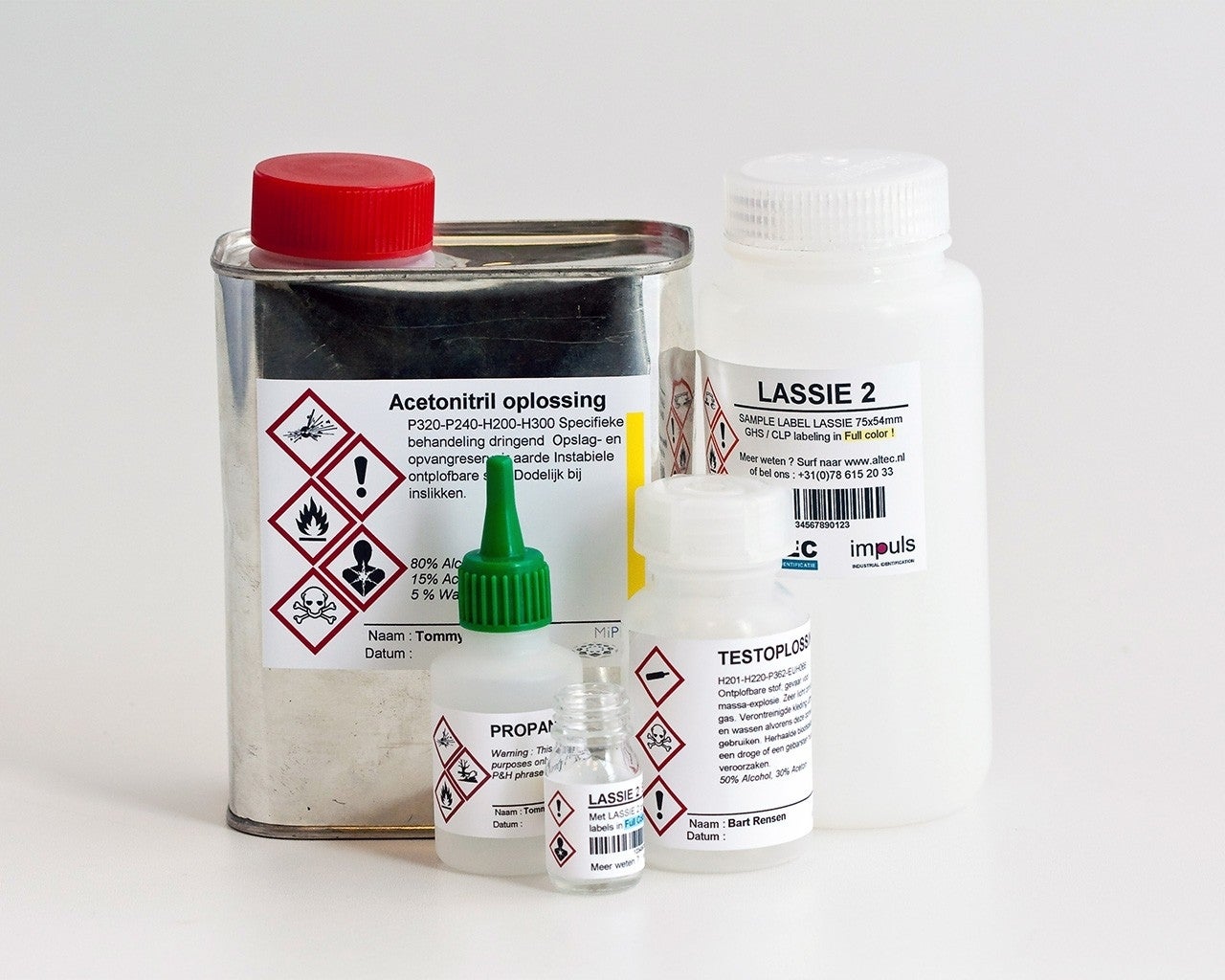 Full-color GHS label | 52 mm x 35 mtr | Wit | 1 rolWanneer je als fabrikant, importeur of gebruiker met gevaarlijke chemische stoffen werkt, dan ben je verplicht om deze volgens de GHS-richtlijnen te etiketteren en verpakken. Bij het labelen van potjes en flesjes met chemische stoffen staat het bovendien vast welke pictogrammen, signaalwoorden en standaardzinnen er gebruikt moeten worden. Met onze GHS-labels kun je, samen met onze LASSIE2 printer en software, eenvoudig GHS-etiketten printen met de juiste symbolen, H- en P-zinnen en aanvullende informatie.