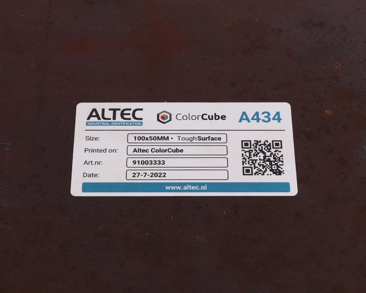 Deze labels print je met de ColorCube labelprinter en overleeft elke industriële situatie. Vanwege de extreme kleefkracht blijft het jarenlang goed plakken op de meest uitdagende oppervlakten. Hierdoor is het een ideale oplossingen voor roestige ondergronden in de staalindustrie, maar wordt het ook gebruikt op de foamborstels van een carwash, met de dagelijkse hoeveelheden chemicaliën die daarbij horen.