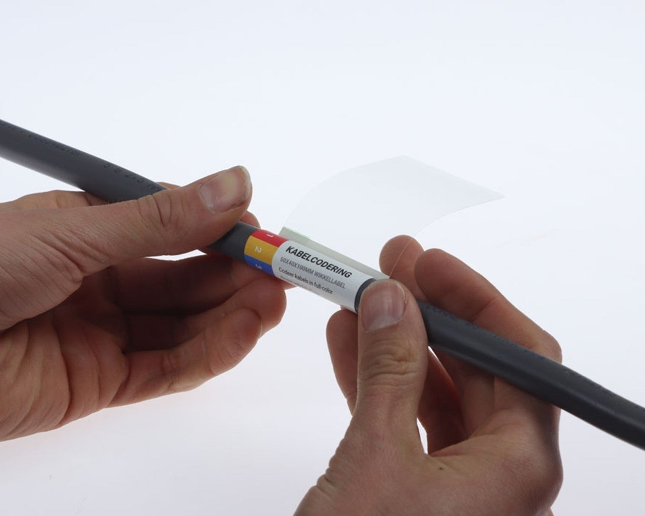 Wikkellabels bestaan uit een gekleurd en een transparant gedeelte. Op het gekleurde gedeelte print je een nummer of codering. Vervolgens bevestig je het geprinte label op een kabel en wikkel je het transparante deel eromheen. Hierdoor blijft de codering zelfs onder extreme omstandigheden jarenlang haarscherp en dus perfect leesbaar.