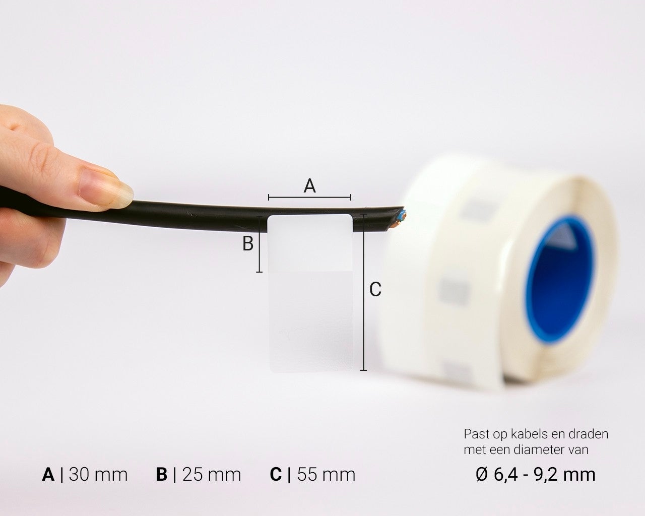 Full-color Wikkellabels | 30 x 20 x 55 mm | Wit | 400 per rolDe geselecteerde wikkellabels zijn geschikt voor kabels met een diameter van 6,4 - 9,2 mm.
