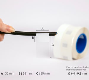 Full-color Wikkellabels | 30 x 20 x 55 mm | Wit | 400 per rolDe geselecteerde wikkellabels zijn geschikt voor kabels met een diameter van 6,4 - 9,2 mm.