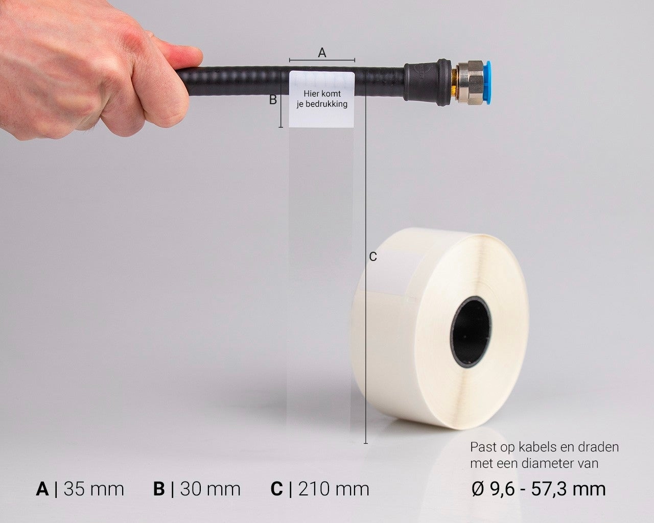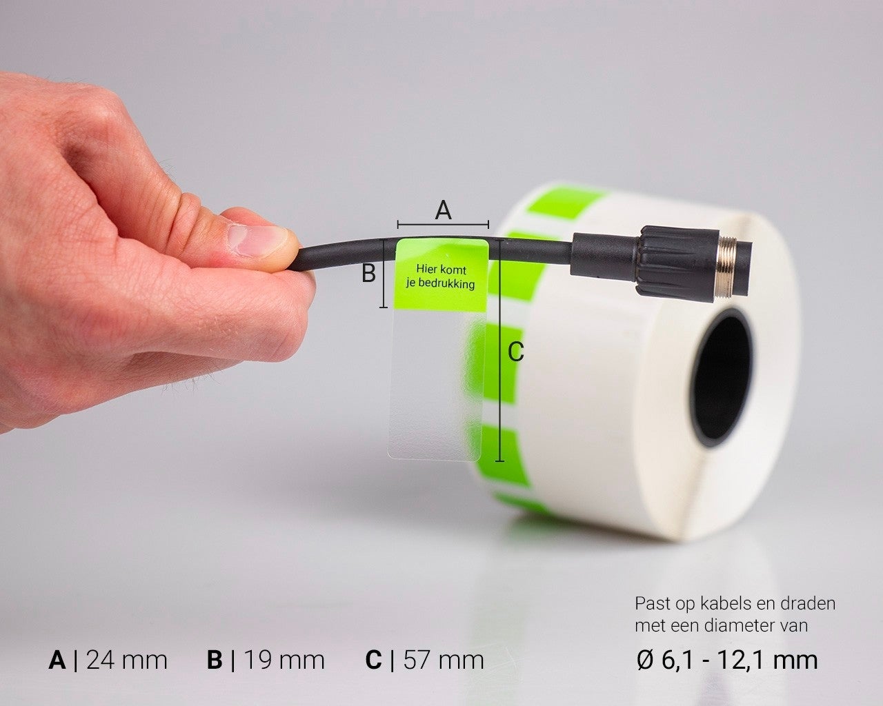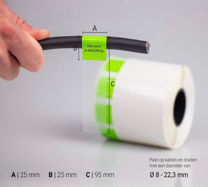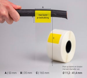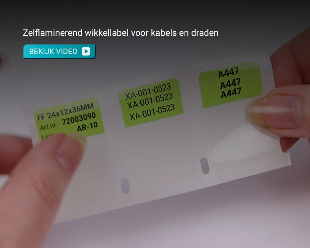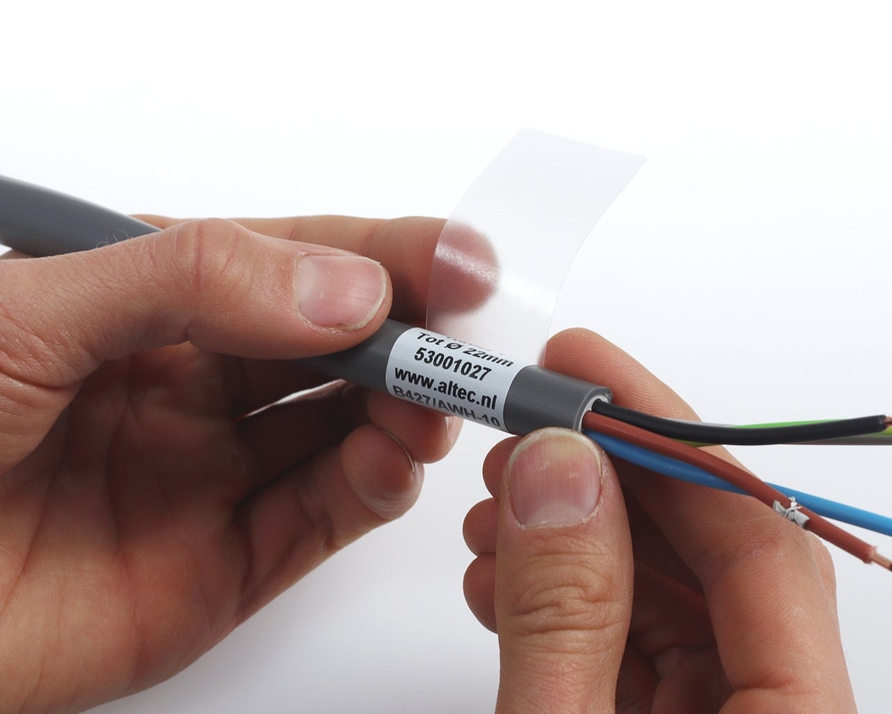 Wikkellabels bestaan uit een gekleurd en een transparant gedeelte. Op het gekleurde gedeelte print je een nummer of codering. Vervolgens bevestig je het geprinte label op een kabel, draad of slang en wikkel je het transparante deel eromheen. Dit zorgt ervoor dat de codering op het wikkellabel jarenlang haarscherp en perfect leesbaar blijft, zelfs onder extreme omstandigheden.
