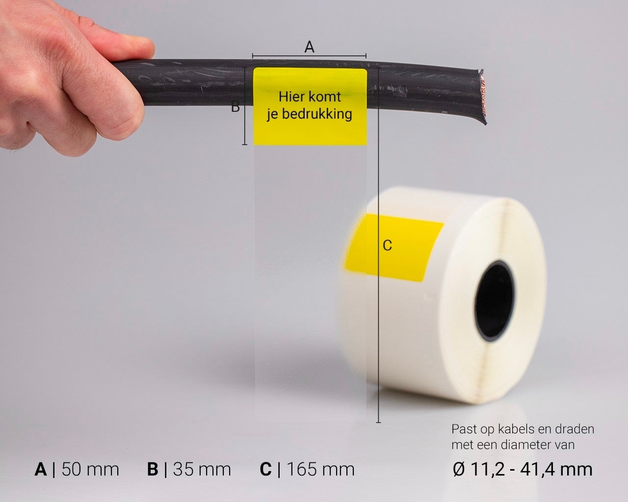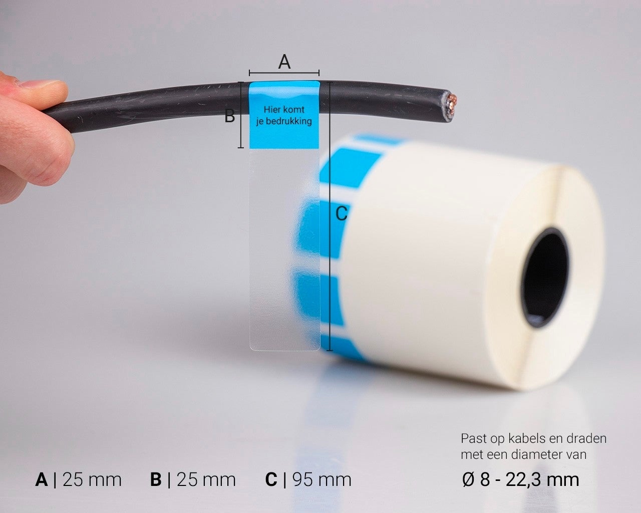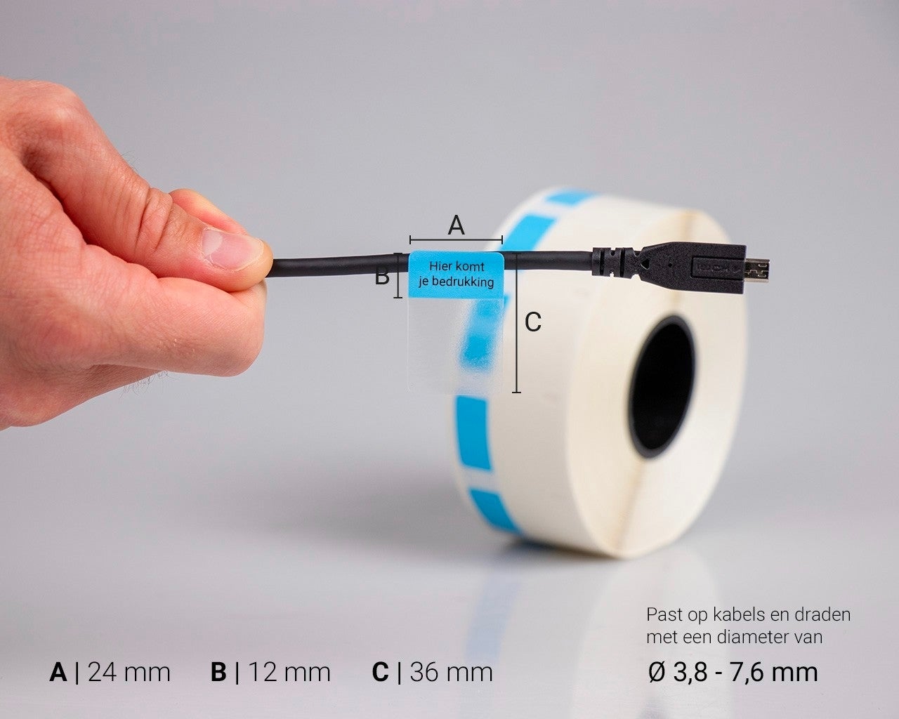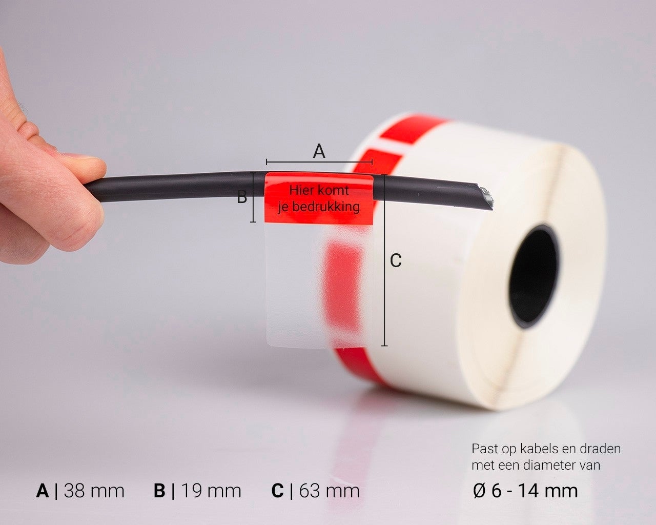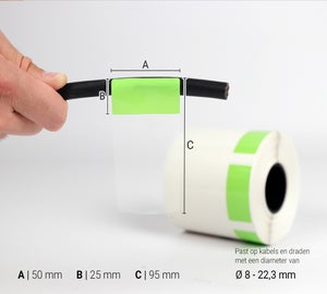 Wikkellabels bestaan uit een gekleurd en een transparant gedeelte. Op het gekleurde gedeelte print je een nummer of codering. Vervolgens bevestig je het geprinte label op een kabel, draad of slang en wikkel je het transparante deel eromheen. Dit zorgt ervoor dat de codering op het wikkellabel jarenlang haarscherp en perfect leesbaar blijft, zelfs onder extreme omstandigheden.