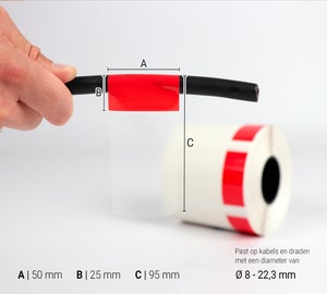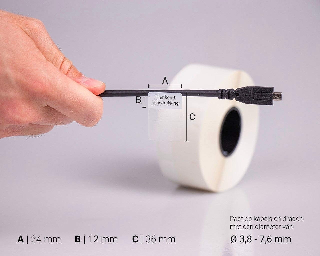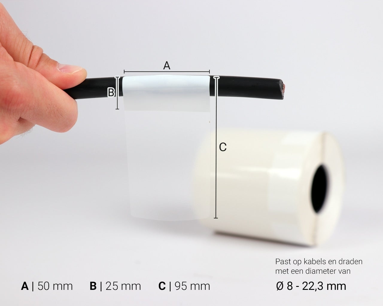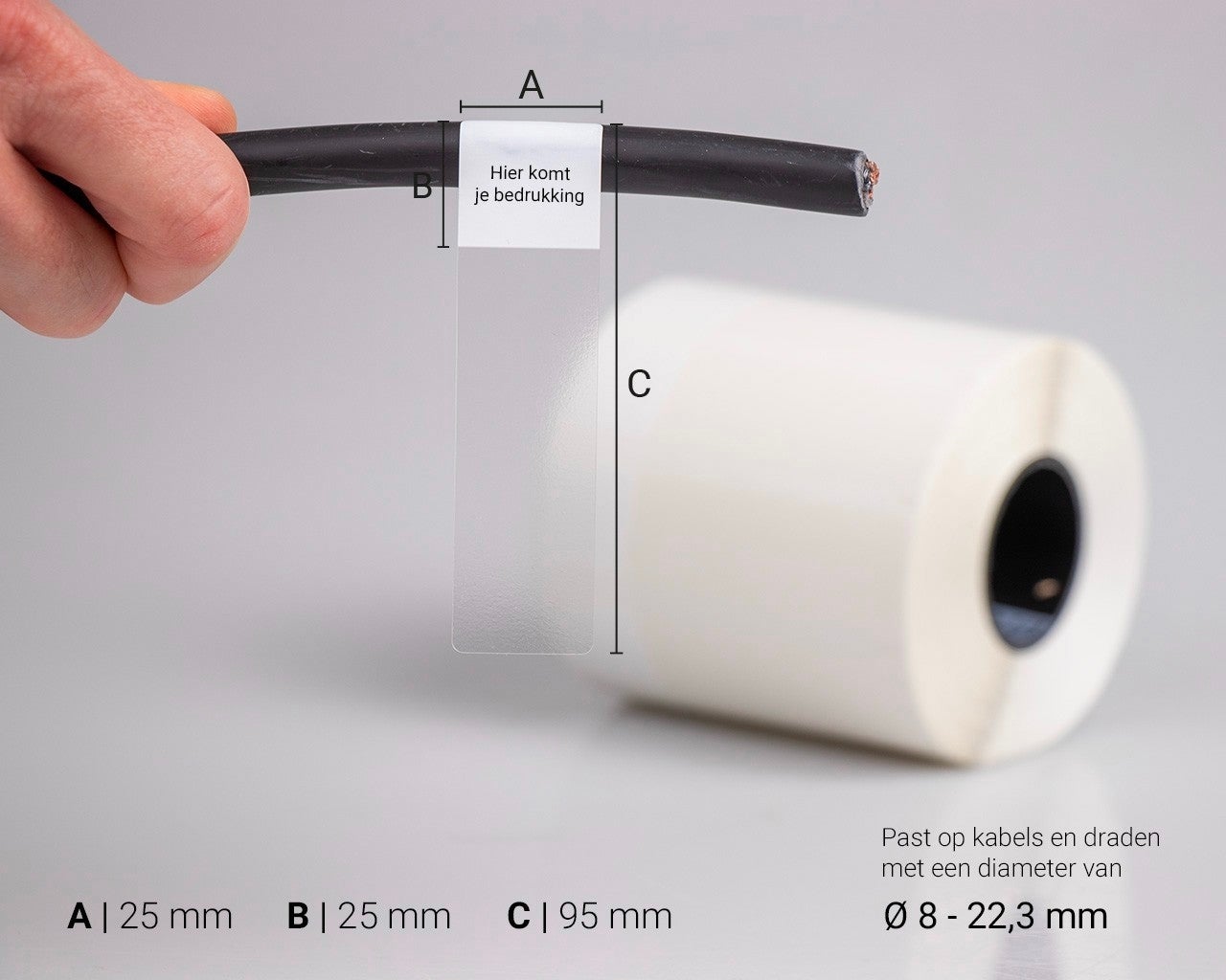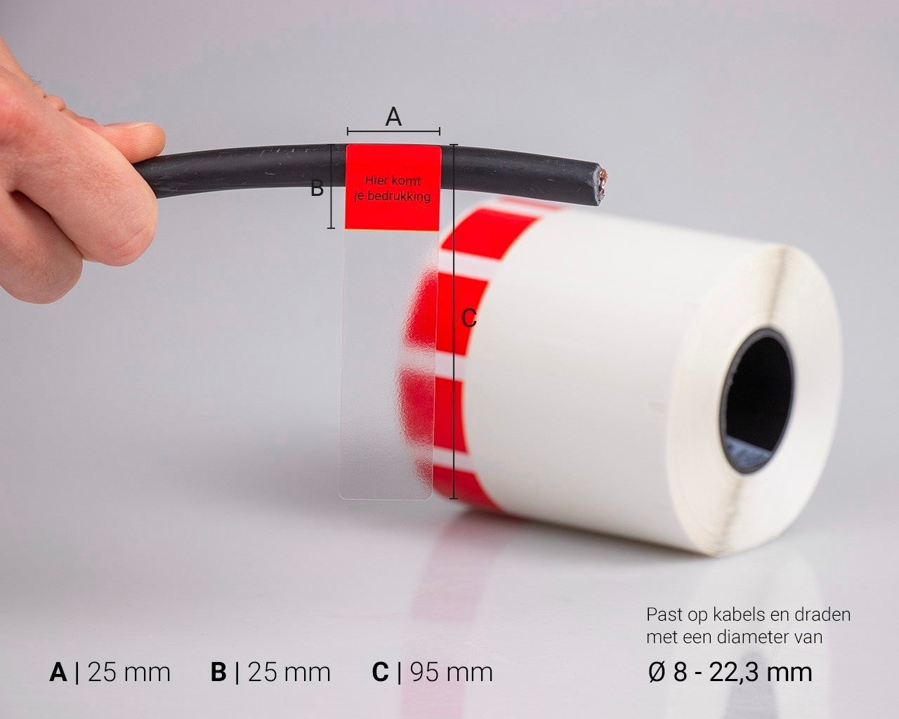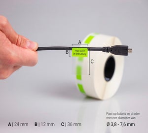 Wikkellabels bestaan uit een gekleurd en een transparant gedeelte. Op het gekleurde gedeelte print je een nummer of codering. Vervolgens bevestig je het geprinte label op een kabel, draad of slang en wikkel je het transparante deel eromheen. Dit zorgt ervoor dat de codering op het wikkellabel jarenlang haarscherp en perfect leesbaar blijft, zelfs onder extreme omstandigheden.