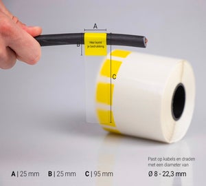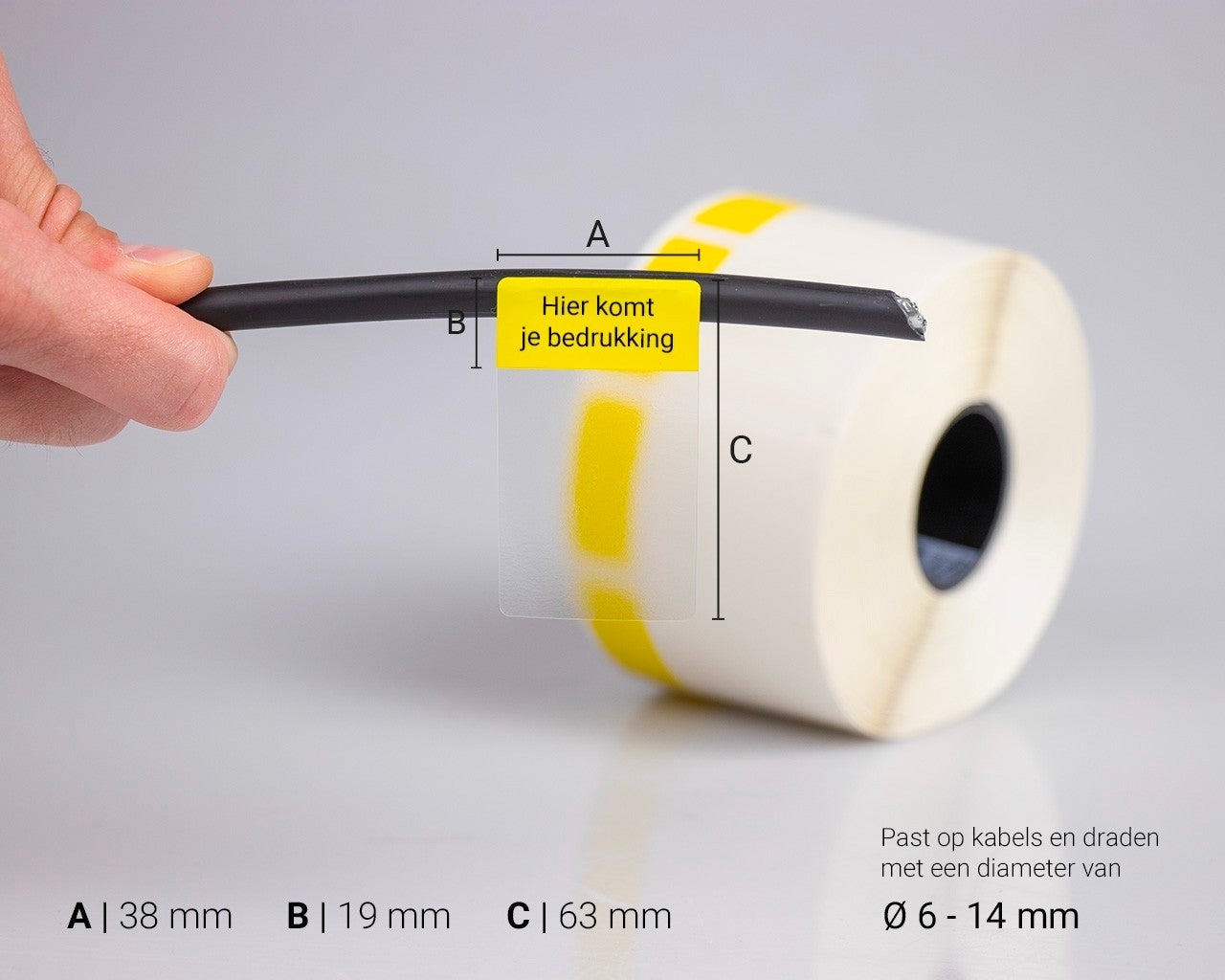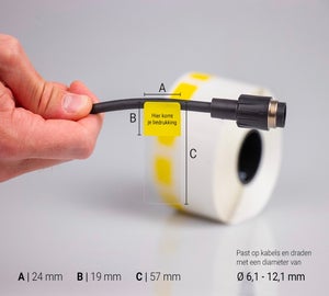 Wikkellabels | 24 x 12 x 36 mm | Geel | 1.250 per rol | 1 op rijDe geselecteerde wikkellabels zijn geschikt voor kabels en draden met een diameter van 3,8 - 7,6 mm