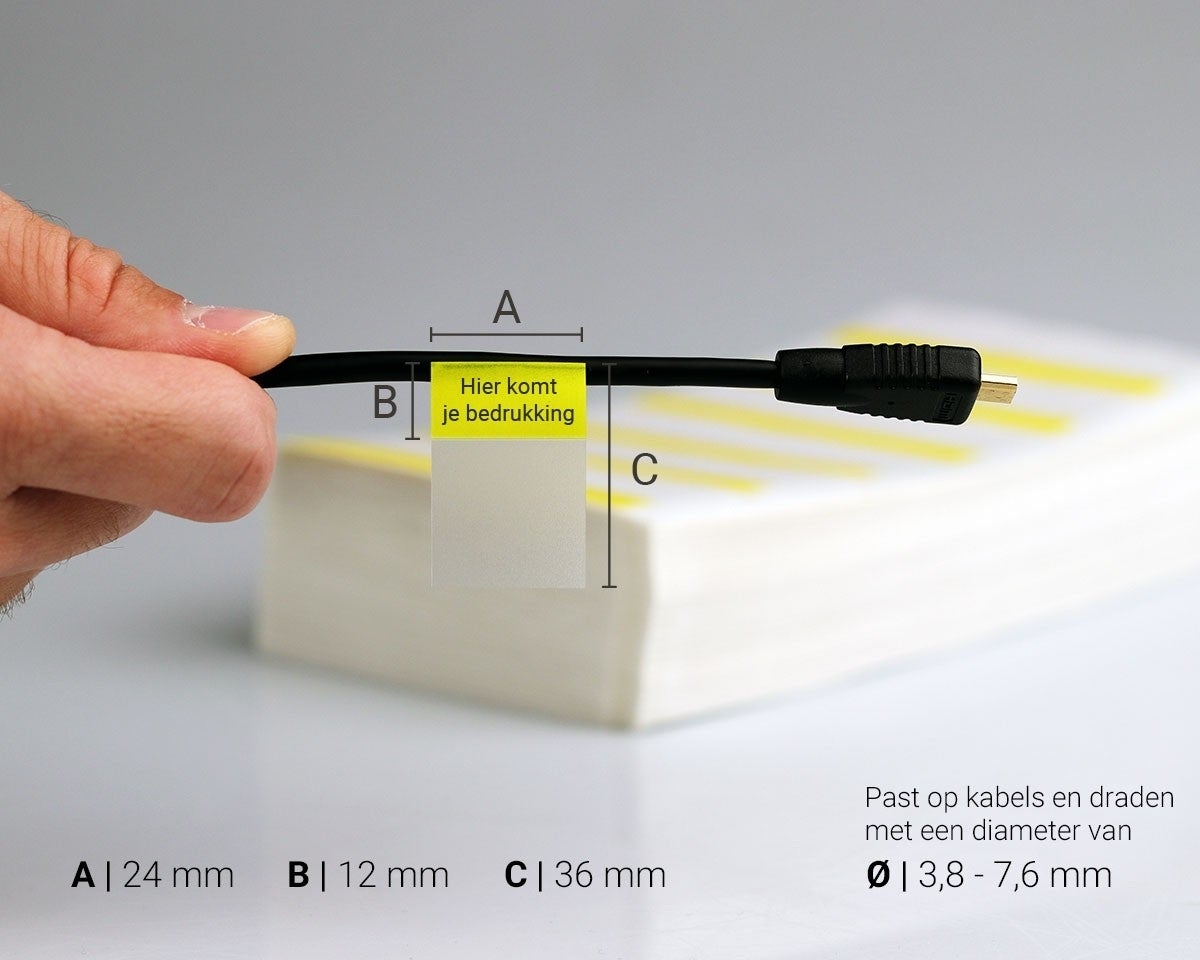 De geselecteerde wikkellabels zijn geschikt voor kabels en draden met een diameter van 3,8 - 7,6 mm.