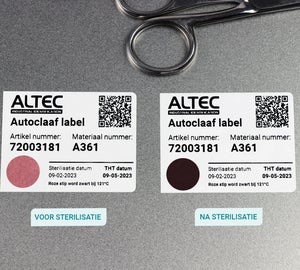 Autoclaaflabel | 38x25 mm | Wit | 500 per rolAutoclaaflabels zijn speciaal ontwikkeld voor het registreren en beheren van het sterilisatieproces in laboratoria. Deze indicatielabels zijn vervaardigd uit polypropyleen en ontworpen voor gebruik bij stoomsterilisatie. Zodra het label zich in een autoclaafomgeving bevindt, verschijnt de voorbedrukte koptekst "STERILIZED", wat aangeeft dat de sterilisatie succesvol is uitgevoerd. Dankzij deze duidelijke visuele indicatie zijn de labels uitermate geschikt voor de tracering van stalen, voorraadbeheer, algemene tracering en de identificatie van laboratoriummaterialen die gesteriliseerd moeten worden.