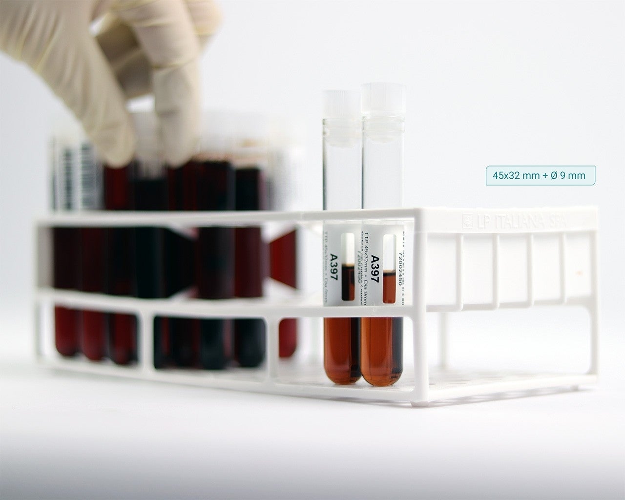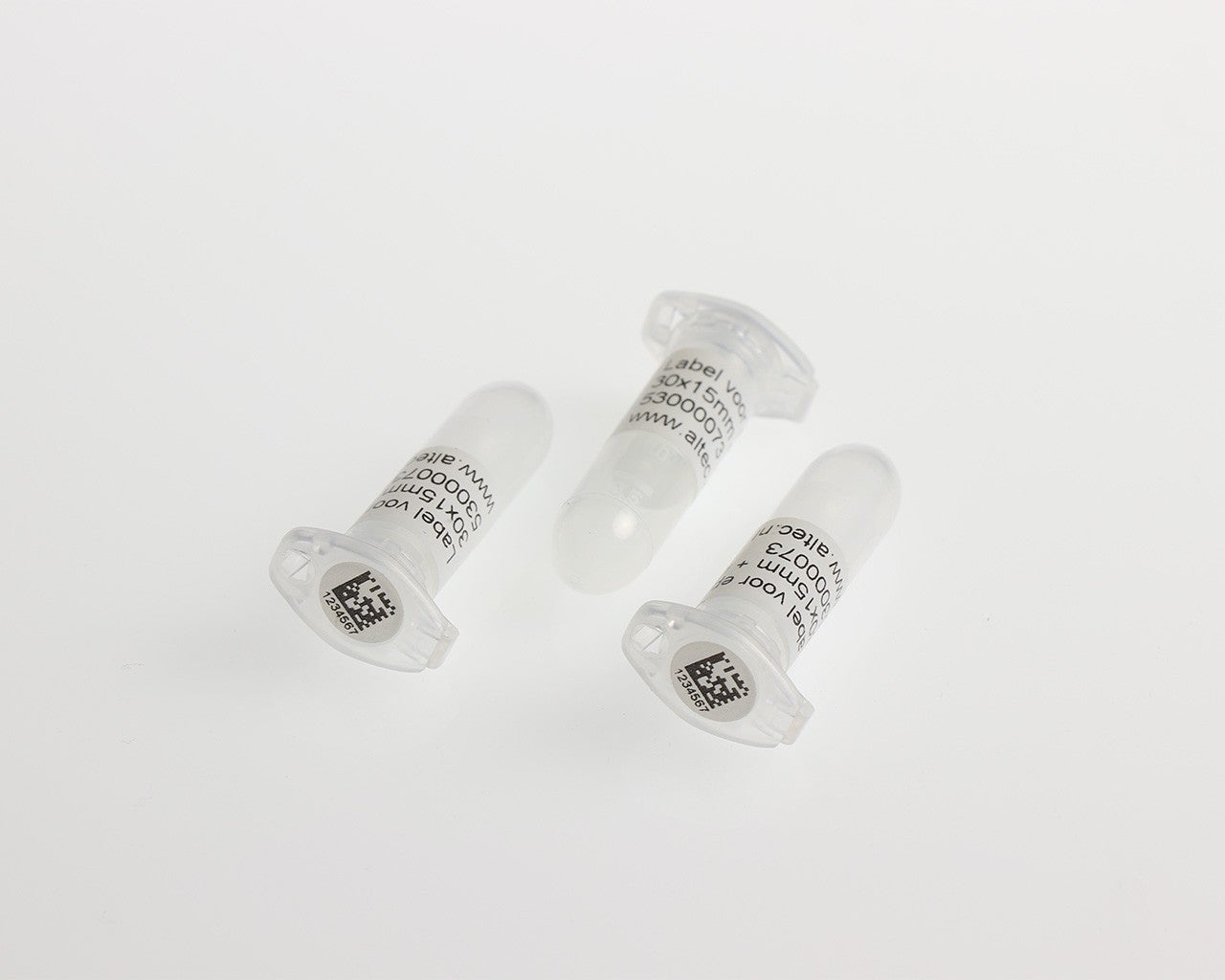 Cryogenic Epjeslabels | 30x15 mm + à 9 mm | Wit | 2.000 per rolCryogenic epjeslabels zijn gemaakt voor het coderen van Eppendorf cupjes. Deze labels bestaan uit een klein label (voor de dop) en een groter label (voor het cupje). Met een temperatuurbereik van -196 °C tot 130 °C zijn deze labels ideaal voor extreem koude omstandigheden, zoals cryogene toepassingen. Dankzij de koude temperatuurbereik tot wel -196 °C zijn ze perfect voor toepassingen met vloeibare stikstof, shock freezing en het identificeren van objecten in de koude keten. Denk hierbij aan het coderen van gevaarlijke stoffen en het bewaren van plasma- en bloedcomponenten. Deze labels zijn geschikt voor alles wat in de vriezer moet worden opgeslagen.