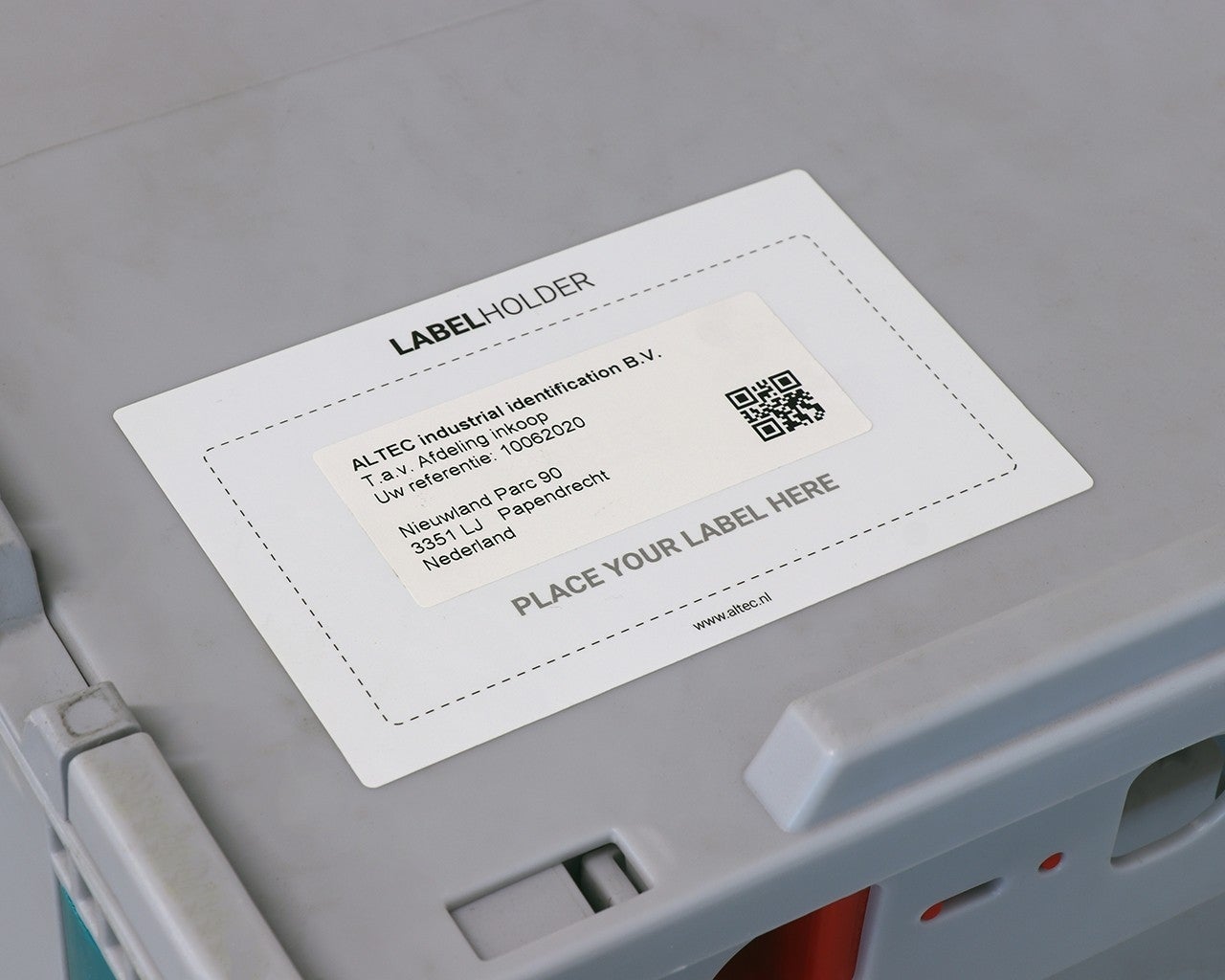Place Label Here | 175x125 mm | Wit | 100 per rolMoet je regelmatig labels wisselen? Bijvoorbeeld productlabels op magazijnstellingen, verzendlabels op transportbakken of prijslabels in de winkel? Dan kan het frustrerend zijn als je bij het verwijderen van je oude labels achterblijvende lijm- en scheurresten ziet. Hoe ga je hier netjes een nieuw label overheen plakken? Place Label Here is een speciaal ondergrond waarop alle labels verwijderbaar worden, met een voorbedrukte tekst die je vertelt waar je je label kan plakken. Je plakt jouw labels dus niet direct op de toepassing, maar op de Place Label Here. Zelfs na jaren gebruik verwijder je het label zonder lijmresten.