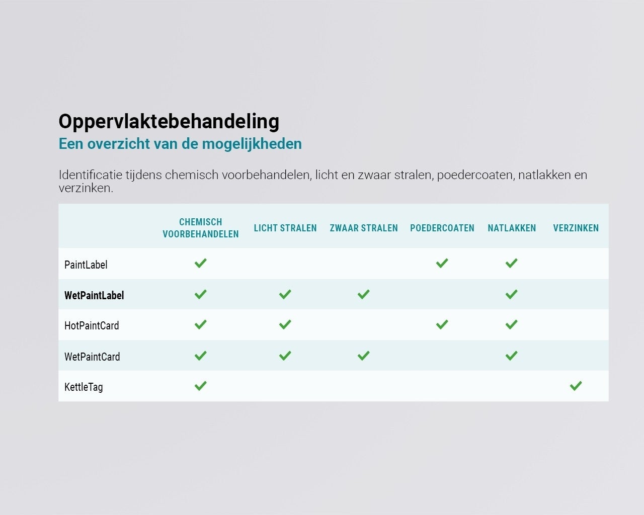 Bekijk hier al onze labels voor oppervlaktebehandeling.