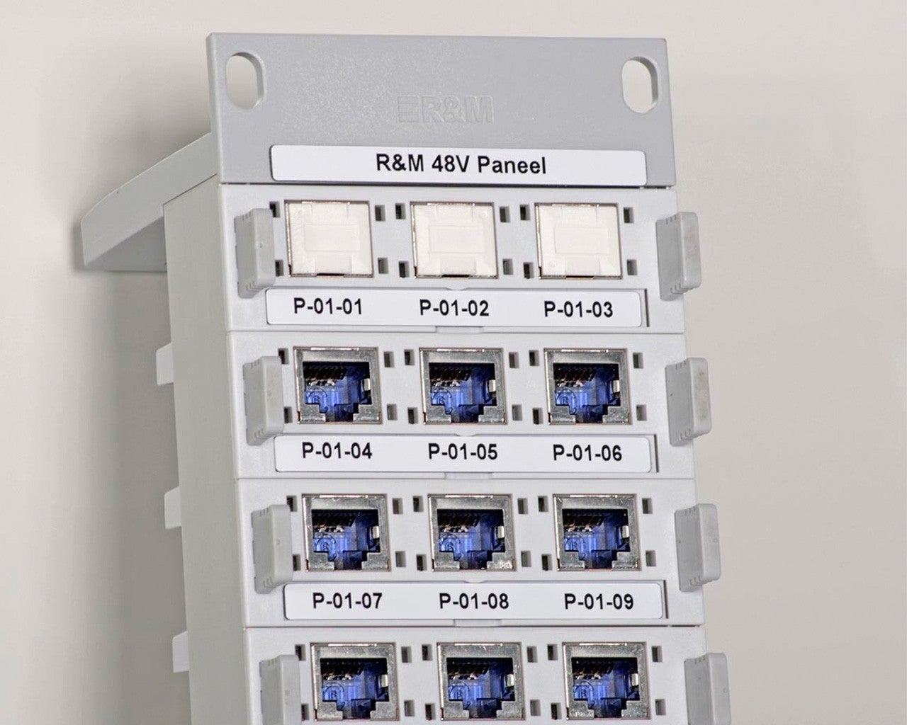 ResoPrint voor Patchpanels | 91x7 mm | Wit | SYSTIMAX | 500 per rolVoor de data- en telecomsector zijn er ResoPrint labels op maat beschikbaar die exact passen in de aansluitingen van patchpanelen. Ze zijn leverbaar voor diverse bekende merken en systemen, zoals R&M, SYSTIMAX en AMP. Zo voorzie je iedere aansluiting van een duidelijke en goed leesbare codering.