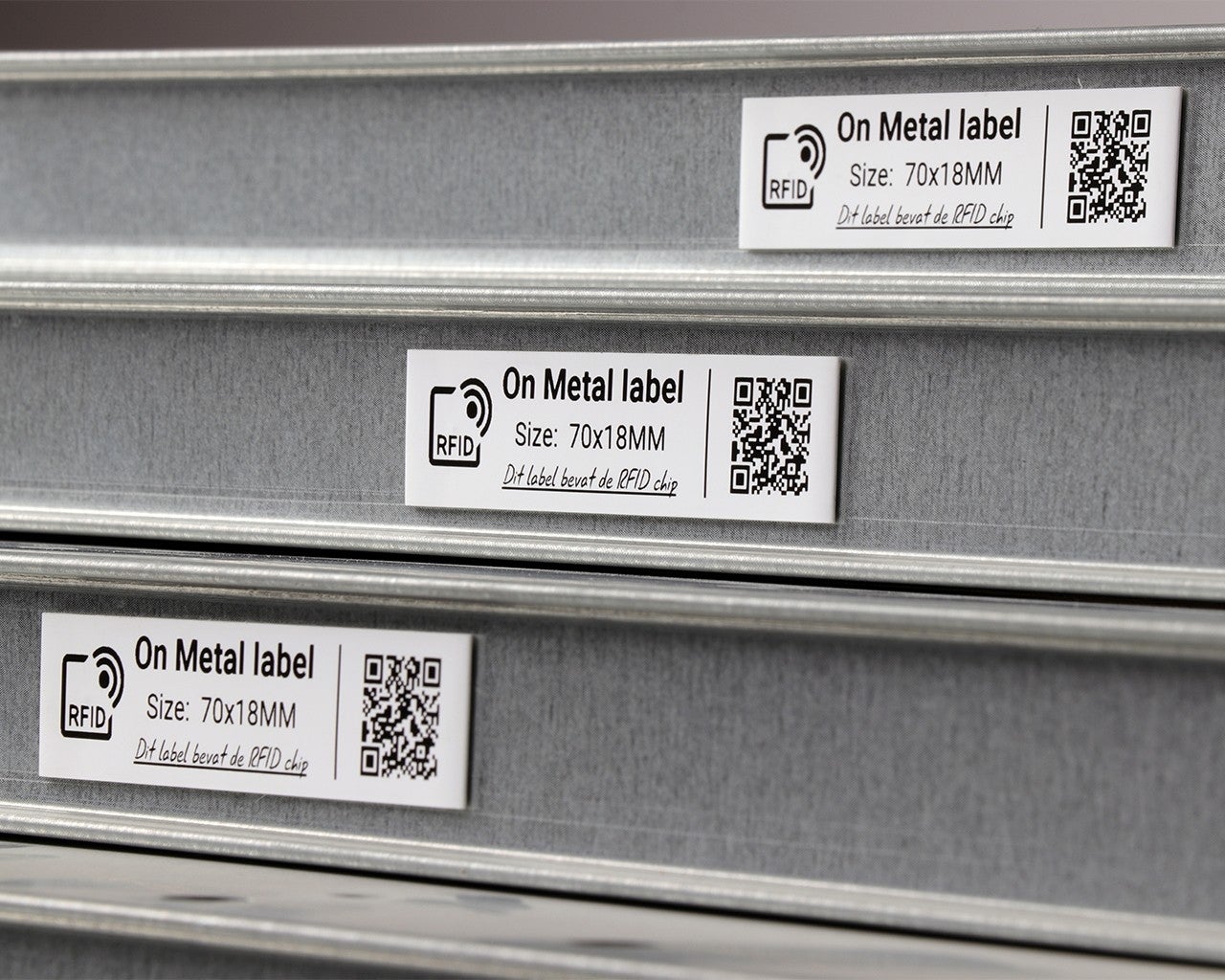 RFID Labels | 70x18 mm | Wit | On-metal | 250 per rolOnze kunststof on-metal RFID labels zijn speciaal ontwikkeld voor gebruik op metalen oppervlakken, zoals staal en aluminium. Door de speciale isolatielaag behouden de labels een betrouwbare leesafstand, ook wanneer je ze direct op metaal plakt. Je kunt de labels in principe op ieder oppervlak gebruiken, maar voor niet-metalen oppervlakken is een non-metal label vaak een betere keuze. De labels werken op een UHF-frequentie en zijn daardoor op enkele meters te scannen. Zo identificeer je objecten snel en eenvoudig, zonder van dichtbij te hoeven controleren.