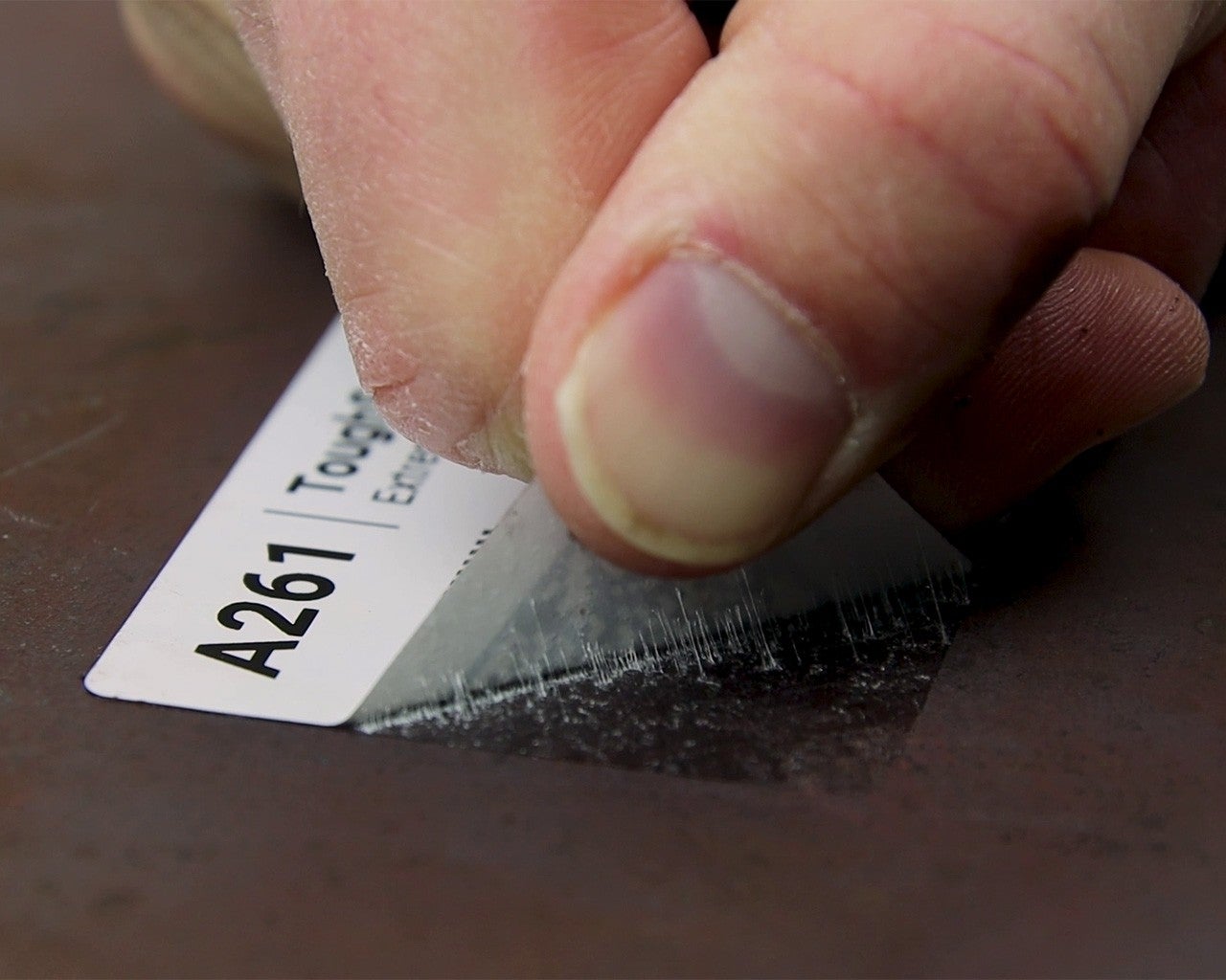 Dit label overleeft elke industriële situatie, zowel binnen als buiten. Vanwege de extreme kleefkracht blijft het jarenlang goed plakken op de meest uitdagende oppervlakten. Hierdoor is het een ideale oplossingen voor roestige ondergronden in de staalindustrie, maar wordt het ook gebruikt op de foamborstels van een carwash, met de dagelijkse hoeveelheden chemicaliën die daarbij horen.