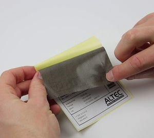 Plak de dekkende grijze achterkant over bestaande etiketten