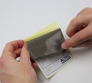 Plak de dekkende grijze achterkant over bestaande etiketten