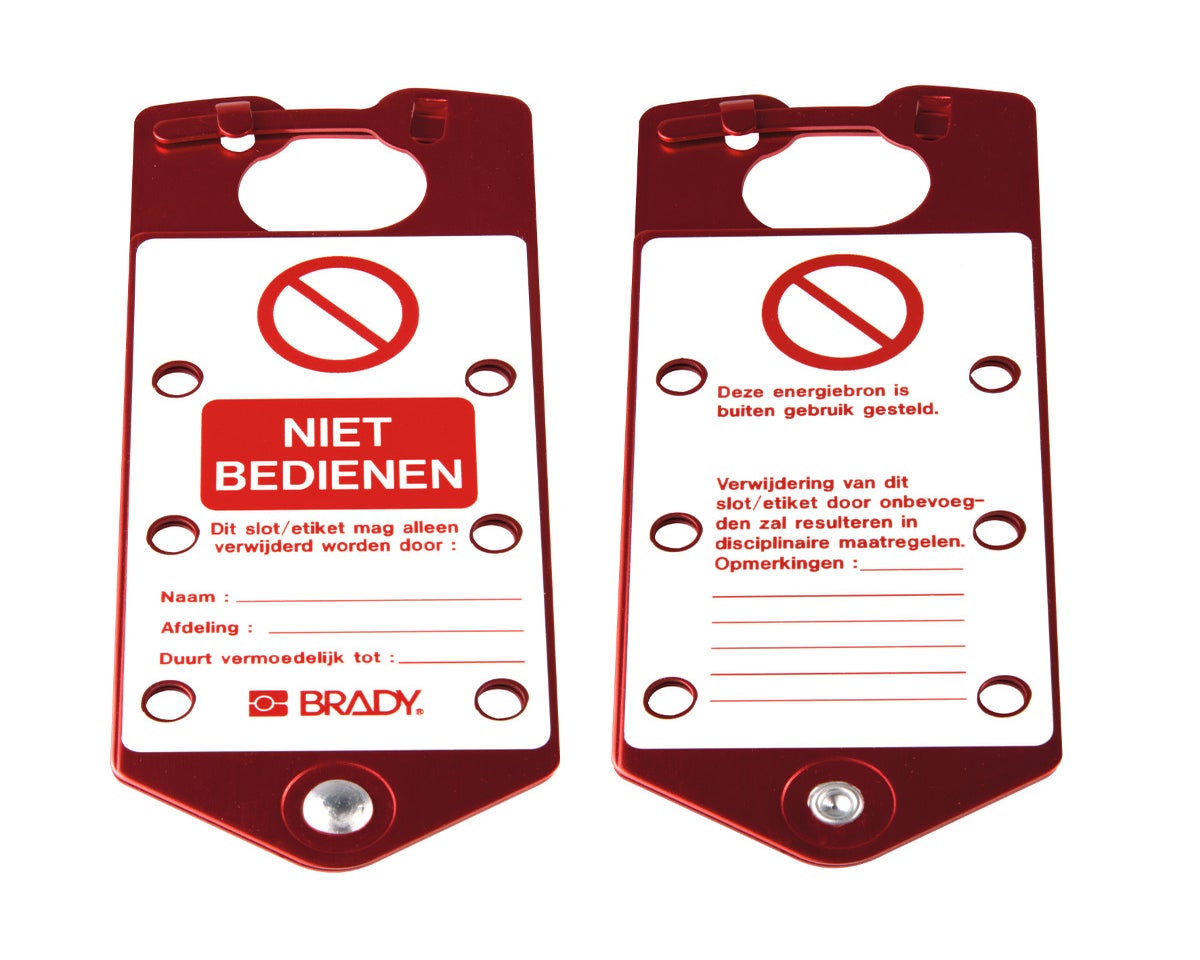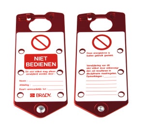 Deze beschrijfbare beugels zijn een combinatie van lockout en tagout en bieden iedere werknemer de mogelijkheid om uitrustingen te vergrendelen en te onderhouden zonder dat ze afzonderlijke beugels en tags nodig hebben. Gebruik permanente of niet-permanente markeerstiften om de labels te beschrijven.