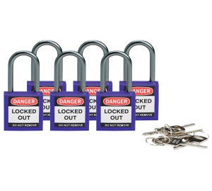 De Brady Compact-veiligheidshangsloten zijn lichtgewicht hangsloten die geschikt zijn voor energie-isolatieprogramma's. Ze vormen een aanvulling op de Brady-veiligheidshangsloten en hebben dezelfde kenmerken. De unieke cilinder is geïsoleerd om de gebruikers te beschermen tegen schokken bij het insteken van de sleutel en biedt dankzij zijn precisievorm met 5 stiften meer unieke sleutelvarianten en een betere beveiliging tegen manipulatie. Het speciale paracentrische sleutelprofiel zorgt voor optimale beveiliging en de speciale structuur verhindert dat de sleutel uit het slot kan worden verwijderd voor het hangslot gesloten is. De sloten zijn compact, licht en bijzonder goed bestand tegen stoten, extreme temperaturen, chemicaliën en corrosie. De niet-geleidende en vonkvrije behuizing heeft een geribbelde structuur voor een betere grip en manipulatie. Per hangslot wordt 1 sleutel geleverd. Sleutelblokkering (sleutel kan niet uit het slot worden verwijderd voor het hangslot goed gesloten is). Andere sleutelsystemen en registratie zijn mogelijk.