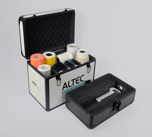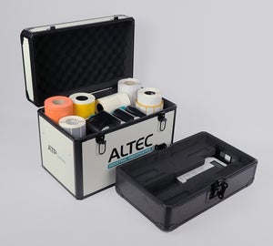 ATP Draagkoffer met BatteryPackWil je vanaf elke locatie labels kunnen printen met jouw ATP-300 Pro? Met de ATP Draagkoffer en BatteryPack kun je jouw printer gemakkelijk meenemen en print je direct labels vanuit de draagkoffer, ongeacht waar je bent. Sluit simpelweg je ATP-300 Pro aan op de ingebouwde BatteryPack onderin de draagkoffer en je hebt genoeg stroom om te kunnen printen. Je hebt enkel nog een laptop of Altec PrintPad nodig. De bovenste opslagruimte in de draagkoffer biedt bovendien voldoende ruimte voor meerdere rollen labels en inktfolies, zodat je altijd alles bij de hand hebt.