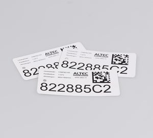 Logo's / afbeeldingen (monochroom), barcodes, teksten, nummering, database-koppeling.