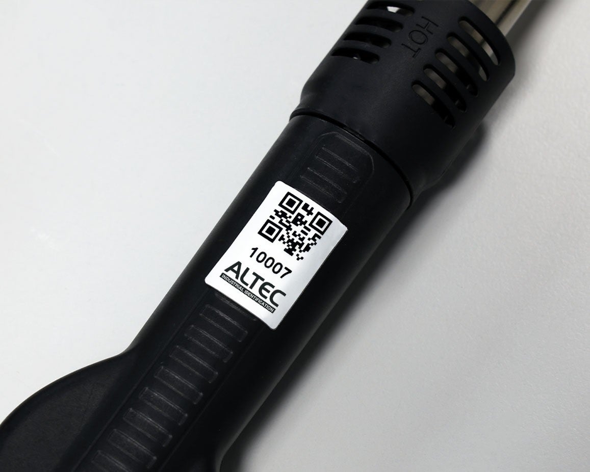 Dit 12x40mm label past perfect in de HoseTag. Dankzij de verhoogde randen van de HoseTag én het beschermlaminaat van jouw label is de bedrukking extra beschermd en heb je een kras- en slijtvaste oplossing.