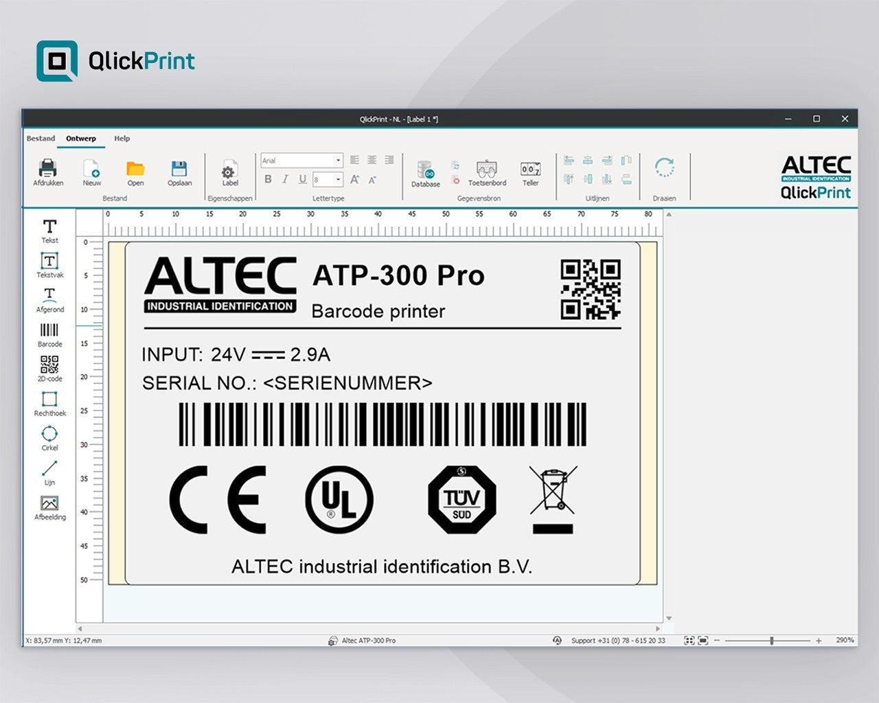 QlickPrint software | 1 gebruikerOf je nu barcodes, 2D codes, logo’s of teksten gebruikt voor jouw identificatie, met QlickPrint software print je direct op alle labels uit onze catalogus. En bovendien maak je eenvoudig een koppeling met vrijwel elke databron. De simpele user interface, samen met een aantal handige functies, zorgt ervoor dat werkelijk iedereen foutloos labels kan ontwerpen en printen. Zo helpt de functie Automatisch schalen je om elke tekst automatisch aan te passen naar jouw gewenste formaat. Daarnaast haal je snel logo’s of pictogrammen uit de ingebouwde galerij. En als wij verbeteringen aan QlickPrint toevoegen ben je in één klik over naar de update. Dus geen gedoe met losse downloads of installatiebestanden.