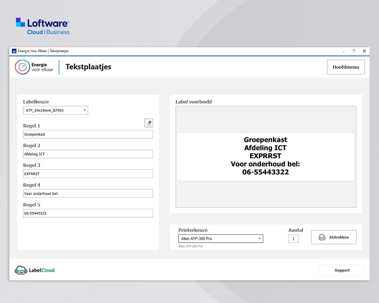 Loftware Cloud Business | 3 printersLoftware Cloud Business is dé moderne oplossing voor bedrijven die labels willen ontwerpen, beheren en afdrukken zonder lokale serverinfrastructuur. Alles draait veilig in de Microsoft Azure-cloud, met realtime toegang tot labels, data, gebruikers en printers. Perfect voor organisaties met meerdere locaties of externe productiepartners, én volledig compatibel met onze ATP-Series, ColorCube, Lassie2 Plus en ICP-410.